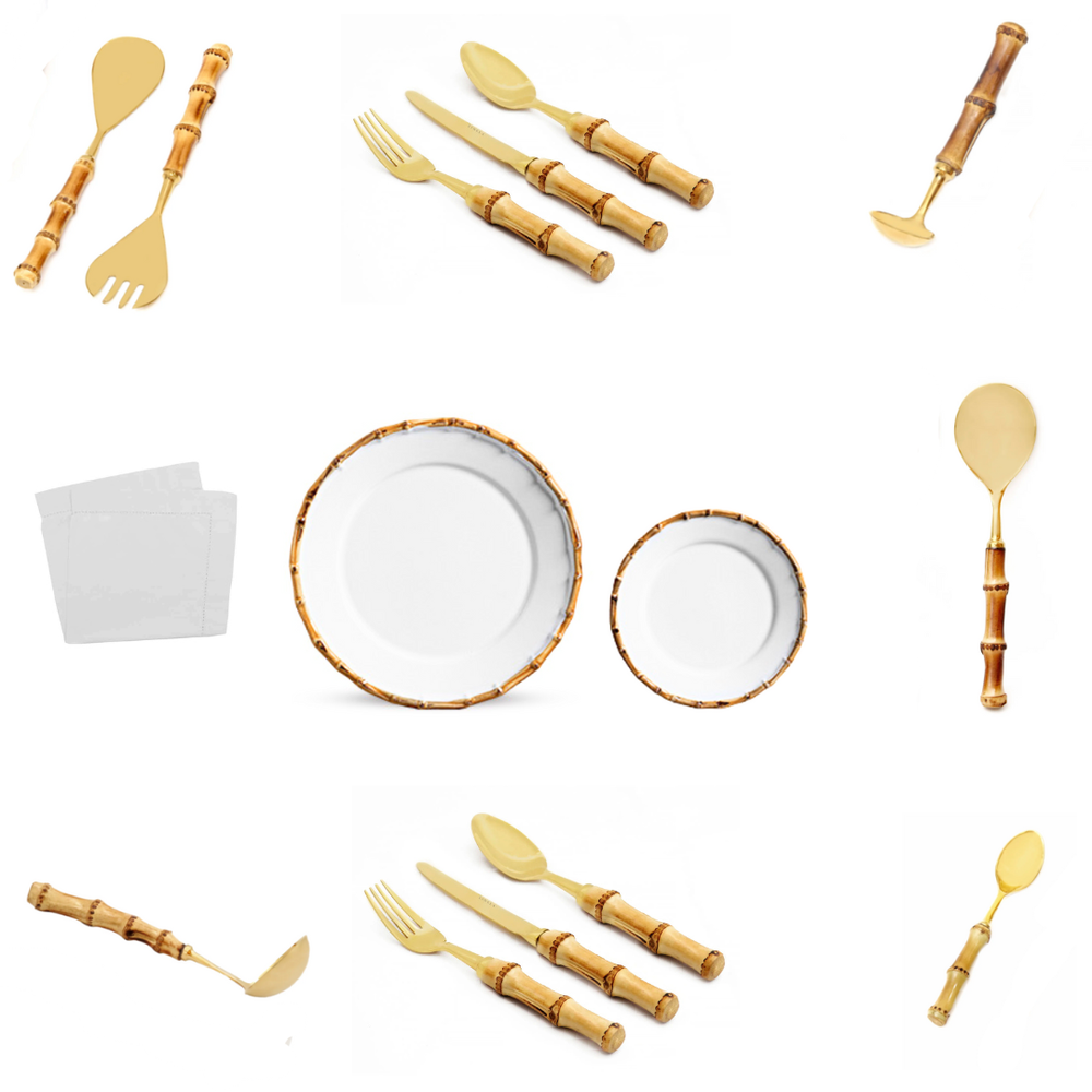 Available in both Silver and Gold finishes, this collection beautifully blends natural textures with sophisticated metallic tones. Perfect for festive feasts, intimate dinners, and celebrations, the Bamboo Flatware Bundle transforms every meal into an elegant and memorable experience.